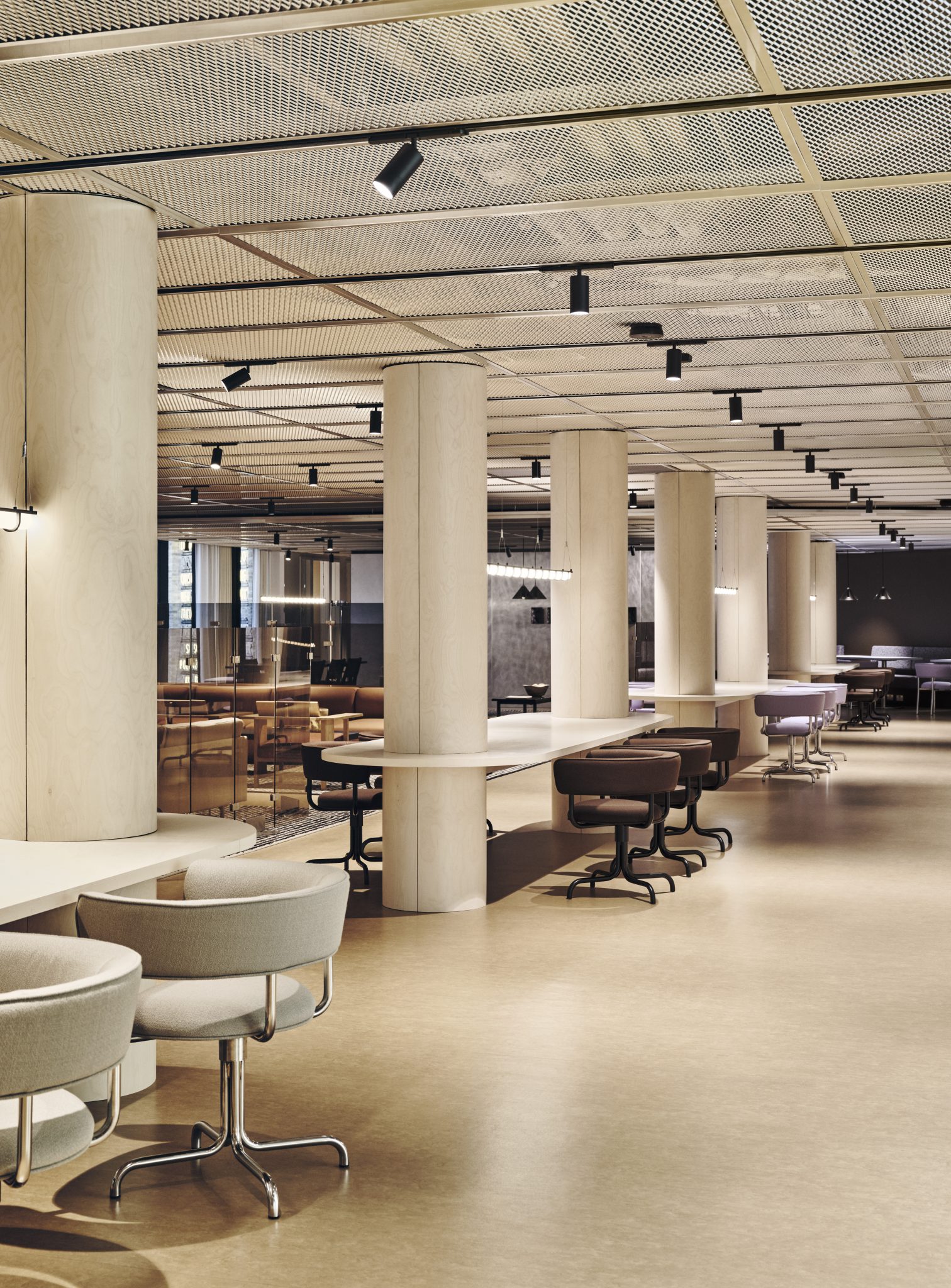 In this dynamic context of present and past, brick textures, urban infrastructure and contemporary leisure, we drew on the area’s industrial tones to compose a space that mixes the shell’s textured glass, glass bricks and floor-to-ceiling windows, with interiors using brushed metal surfaces, tactile fabrics, abundant wooden accents, and natural earth tones.