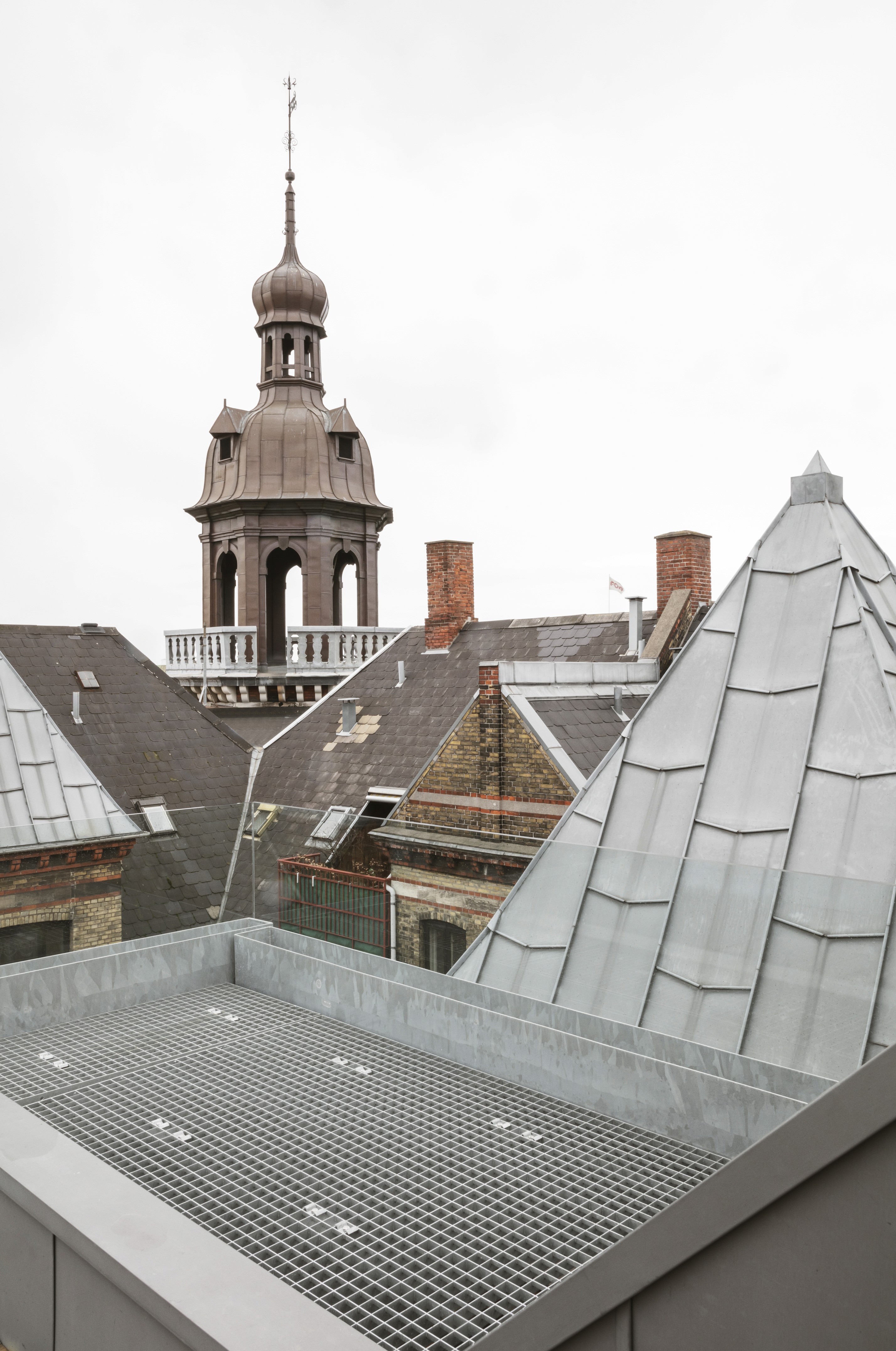 The key architectural interventions are the exposure of the pitch roof structure, extending the kitchen space into the living space and adding a roof terrace that is exposedto sun light throughout the day. A spiral staircase made from glass-blasted steel and a custom yellow-pated zinc finish mainly used for industrial purposes was custom made to create a new internal connection.